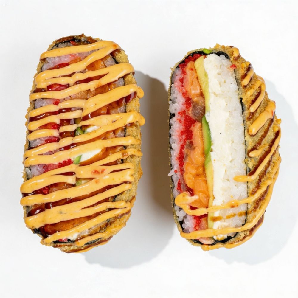 Рис, Нори, Сыр творожный, Соус шрирача, Авокадо, Соус Унаги.