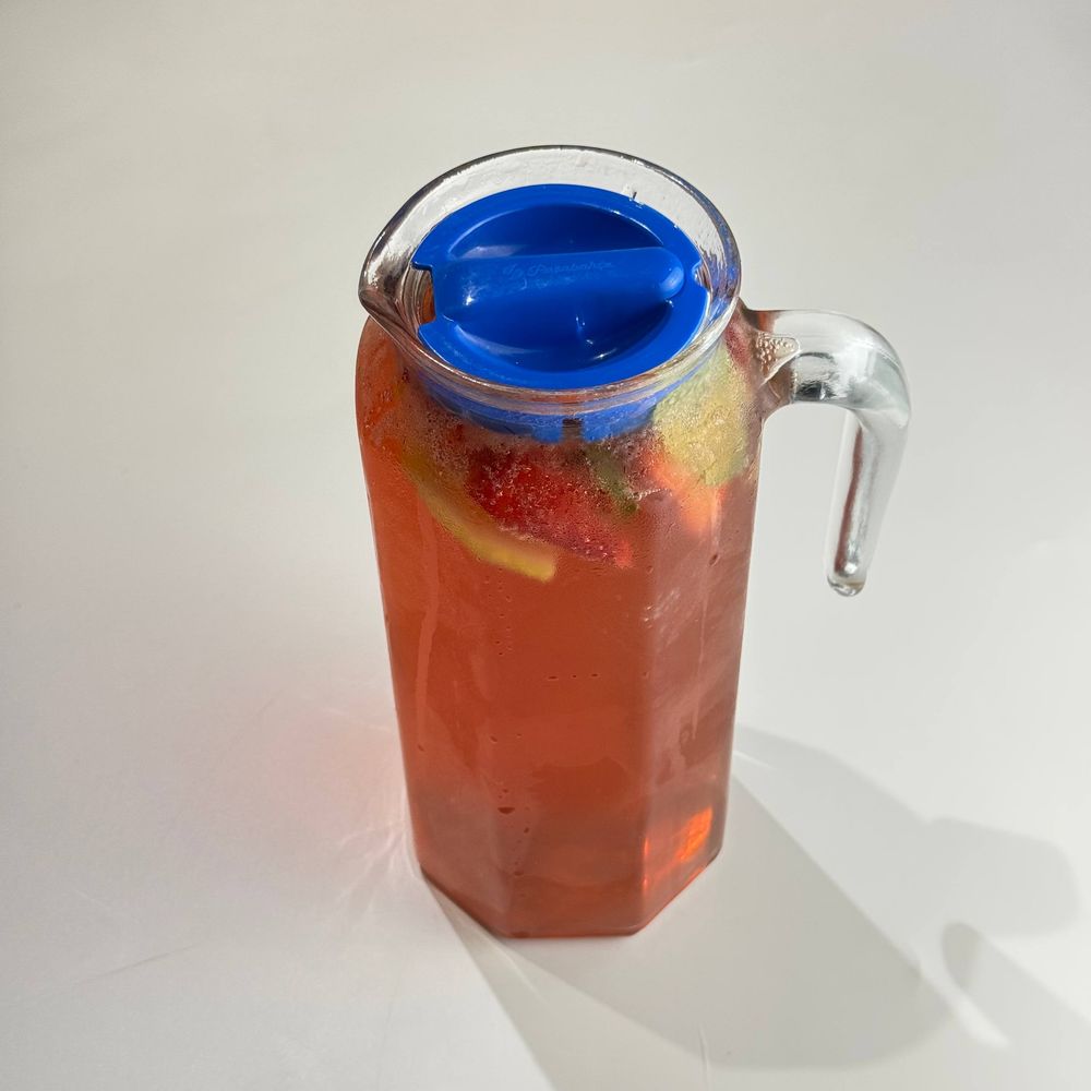 Клубника, лимон, мята, сироп Barbados, газированная вода.