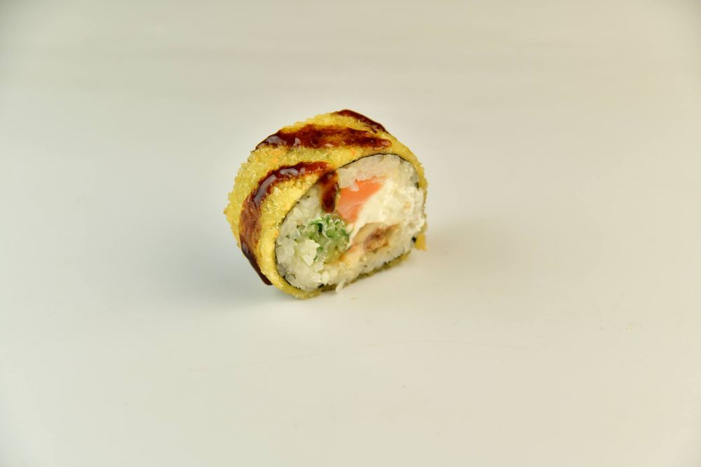 Рис, Нори, Сыр творожный, Лосось, Огурцы, Угорь, Соус унаги, Кунжут.