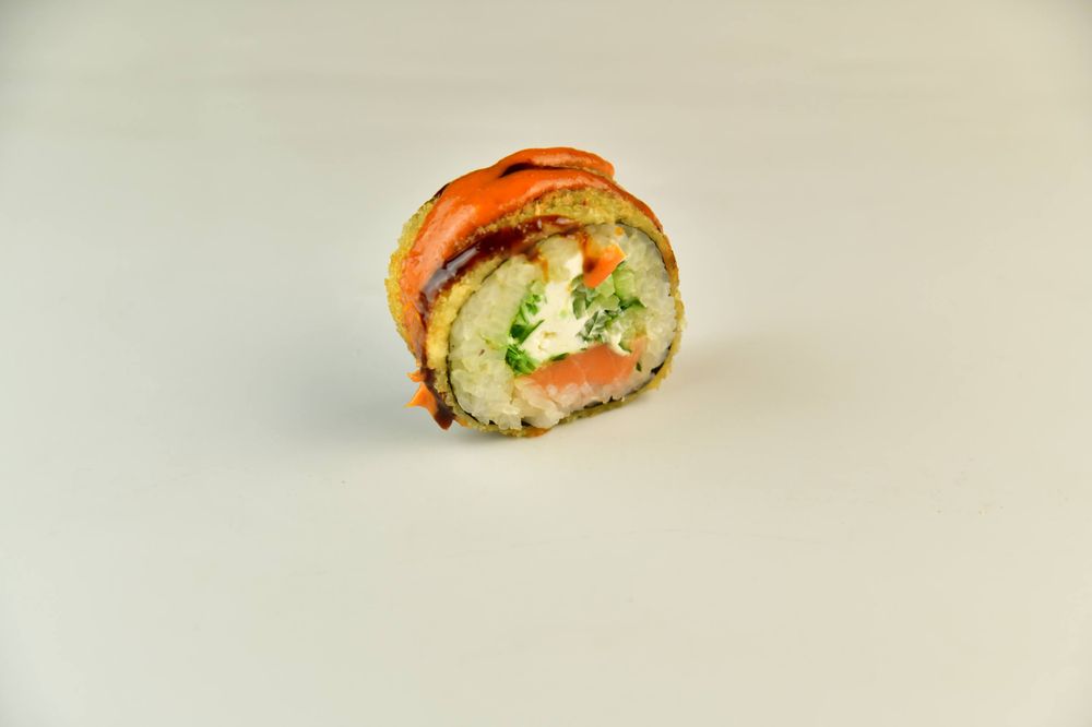 Рис, Нори, Сыр творожный, Чука, Огурцы, Лосось, Соус унаги, Соус шрирача.