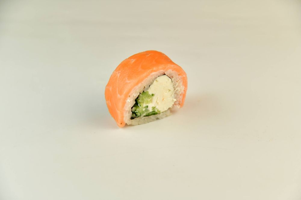 Рис, Нори, Сыр творожный, Лосось, Огурцы.